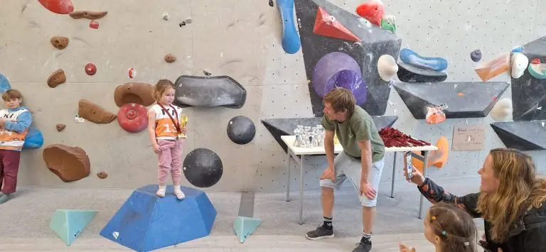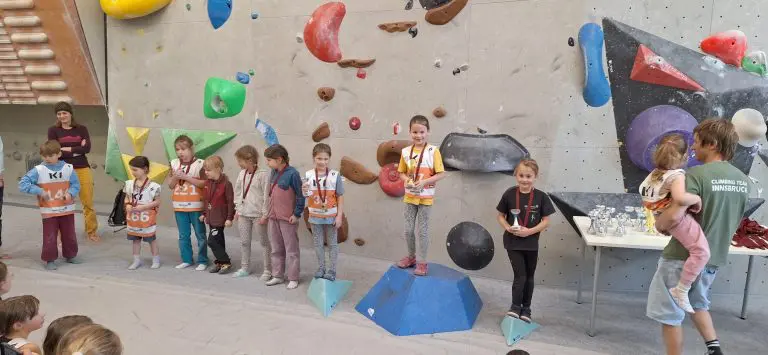 Es wurde geklettert, was das Zeug hielt. Um 10 Uhr stand im Kursbereich das Klettern mit Seil am Programm, wobei außer in der U 13 mit Auto Belay (Toppas Selbstsicherungsautomaten) geklettert wurde. Auch das Speedklettern war heuer mit dabei. Auf einer verkürzten flachen Wand konnten die Kinder entsprechend Tempo aufnehmen (Rekordzeit lag bei 6,4 sec.). Höhenpunkt nach einer kurzen Mittagspause war erneut das Bouldern. Die Trainer vom AV Innsbruck (Hannes Brunner, Eva Hamelmüller, Bene Knapp und Franziska Sterrer) haben am Vortag in Summe 40 kindergerechte Boulder in die Wände geschraubt.