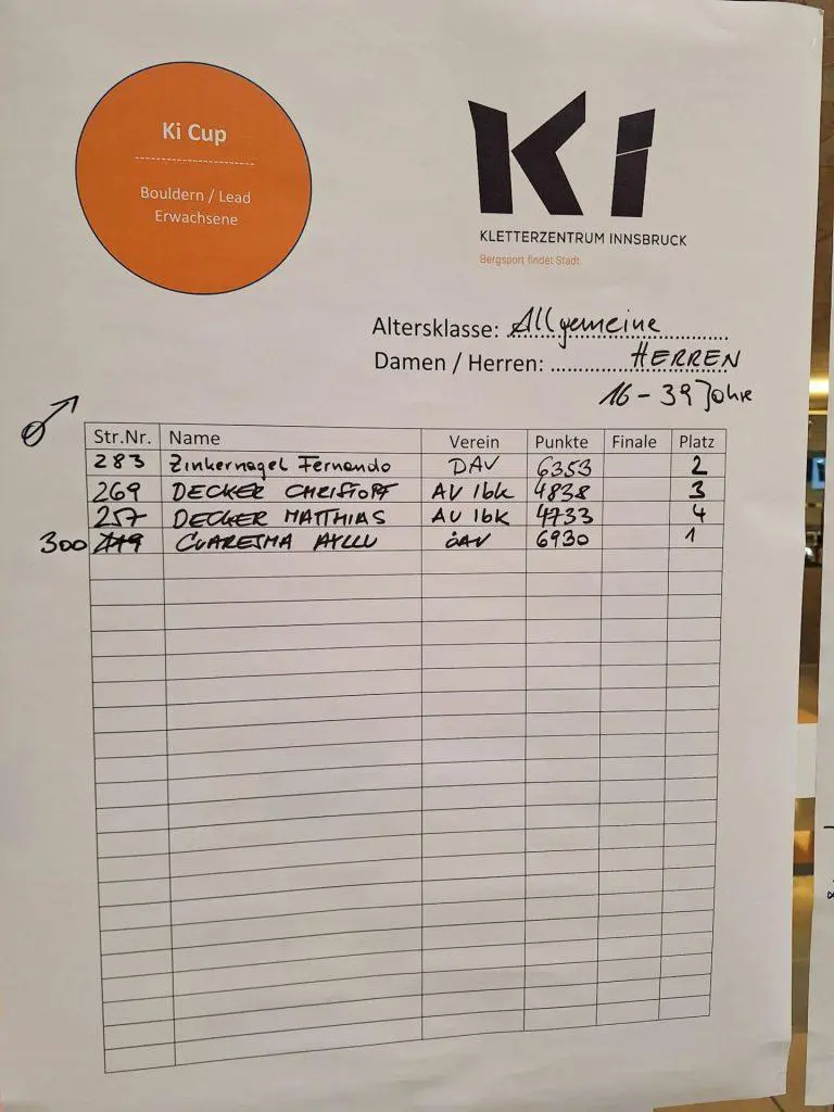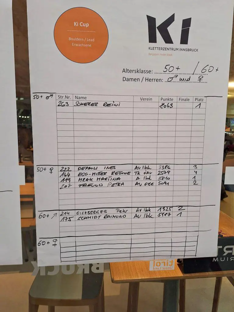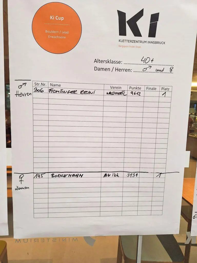 Die Verlegung des Ki Cups auf frühlingshafte Wochenendtage hat sich in der Hobbyklasse nicht nur letztes Jahr, sondern auch heuer wieder negativ auf die Teilnehmerzahl ausgewirkt. Schade, aber viele sind zu dieser Jahreszeit bereits auf den Felsen unterwegs und schonen sich freitags für ihre Versuche am Wochenende. Ein Grund dafür, den Bewerb zukünftig sicher wieder früher im Jahr und mitten unter der Woche einzuplanen.