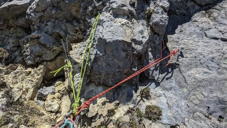 Die Längen: 4 (100m), 6+ (50m), 7- (50m), 8 (50m), 7 (50m), 7- (40m), 6+ (25m), 6- (50m), 4+ (50m)