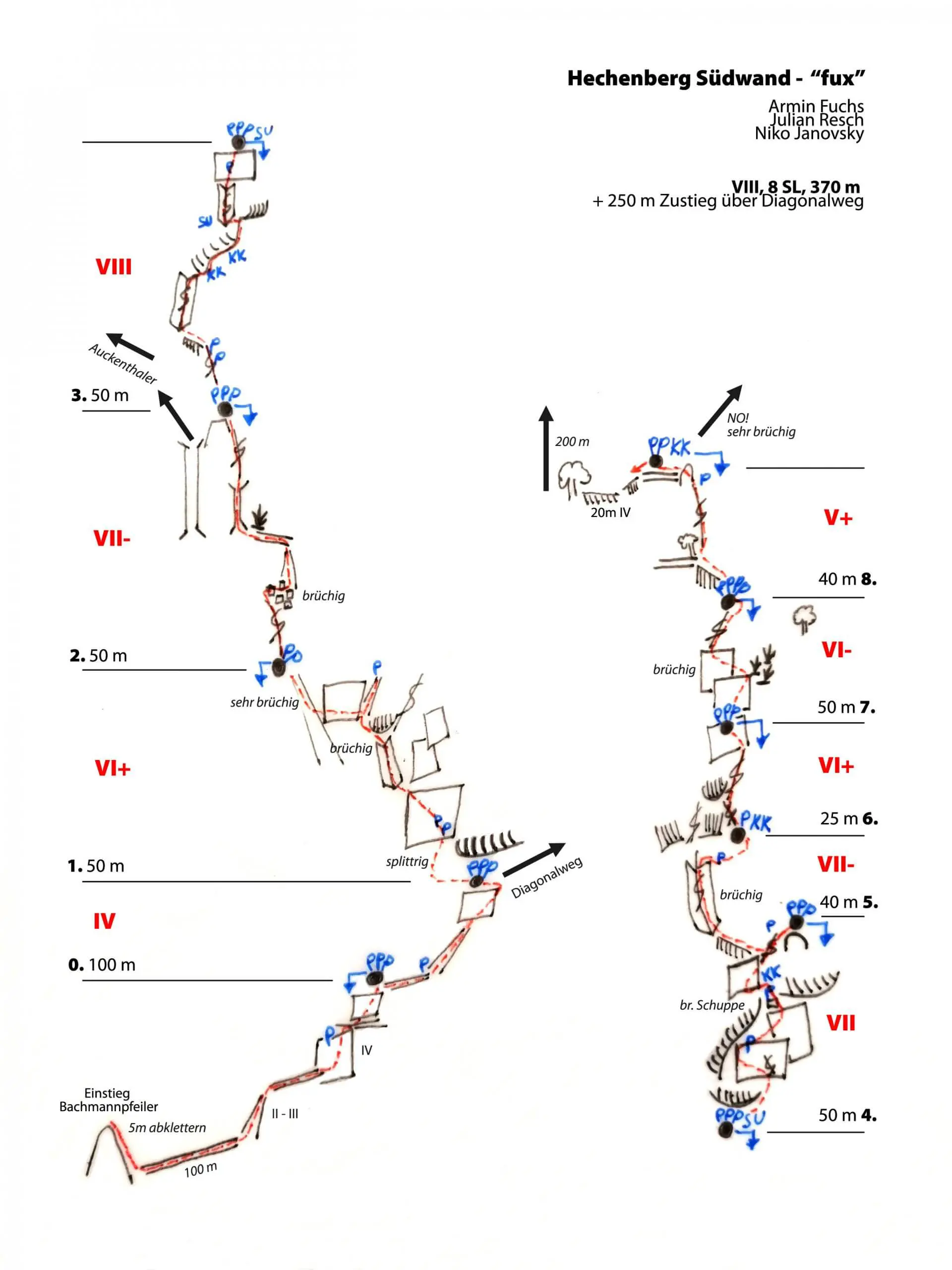 Facts: VIII, 8 SL, 370m, + 250 m Zustieg über Diagonalweg