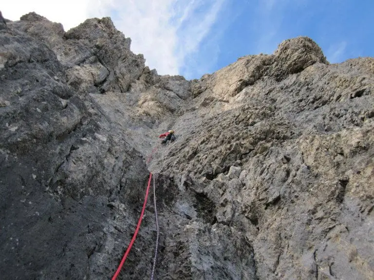 Material: 60m Halb- oder Zwillingsseile, 1 Satz Rocks und Camelots (0,5; 1 und 2), 12 Expressschlingen, Bandschlingen