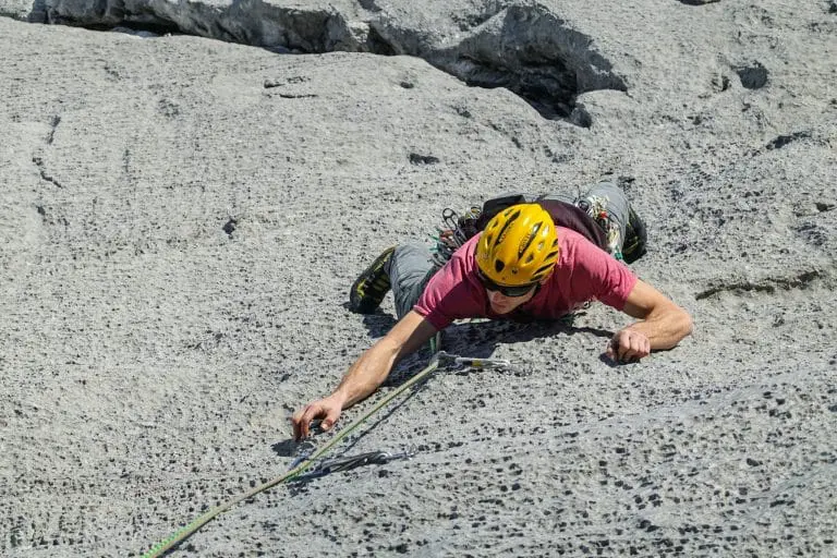 Material: bestens mit Bohrhaken abgesichert – normale alpine Sportkletterausrüstung  (16 Express, 70m Einfachseil oder 50m Halbseile)