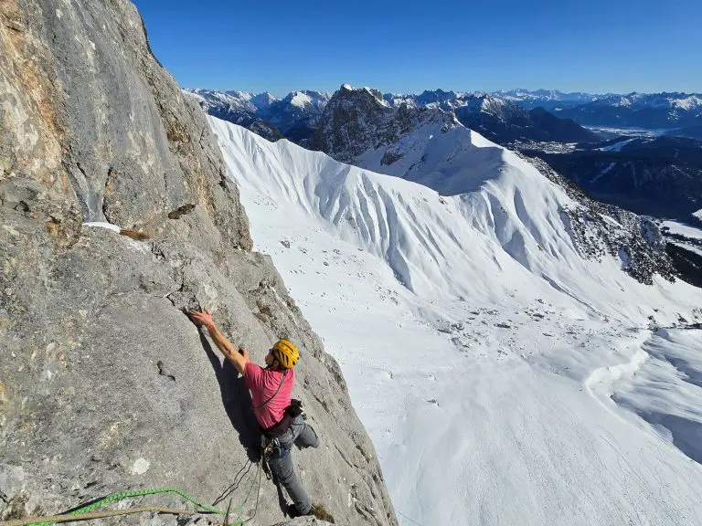 An sonnigen Tagen können durch die südseitige Exposition die Routen auch im Winter geklettert werden –  Zustieg dann auch mit den Tourenski möglich (Lawinengefahr beachten).