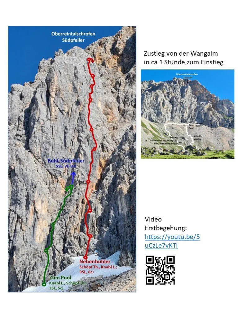 Thomas Schöpf und Luis Knabl sind zusammen mit ihren Freunden derzeit sicher die aktivsten Erschließer an der Wetterstein-Südseite (z.B. Sektor Figaro oder „Die Schöpfung“). Thomas hat uns netterweise Infos zu zwei weietren Routen am Oberreintalschrofen zukommen lassen, die wir euch natürlich nicht vorenthalten wollen: